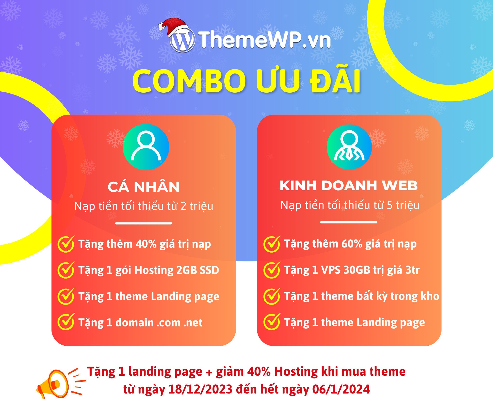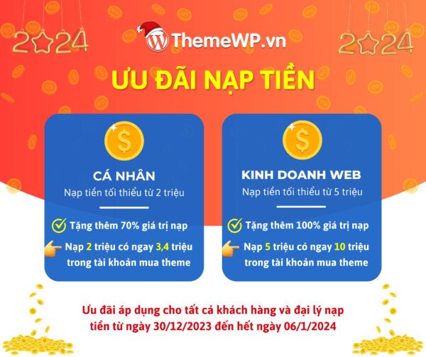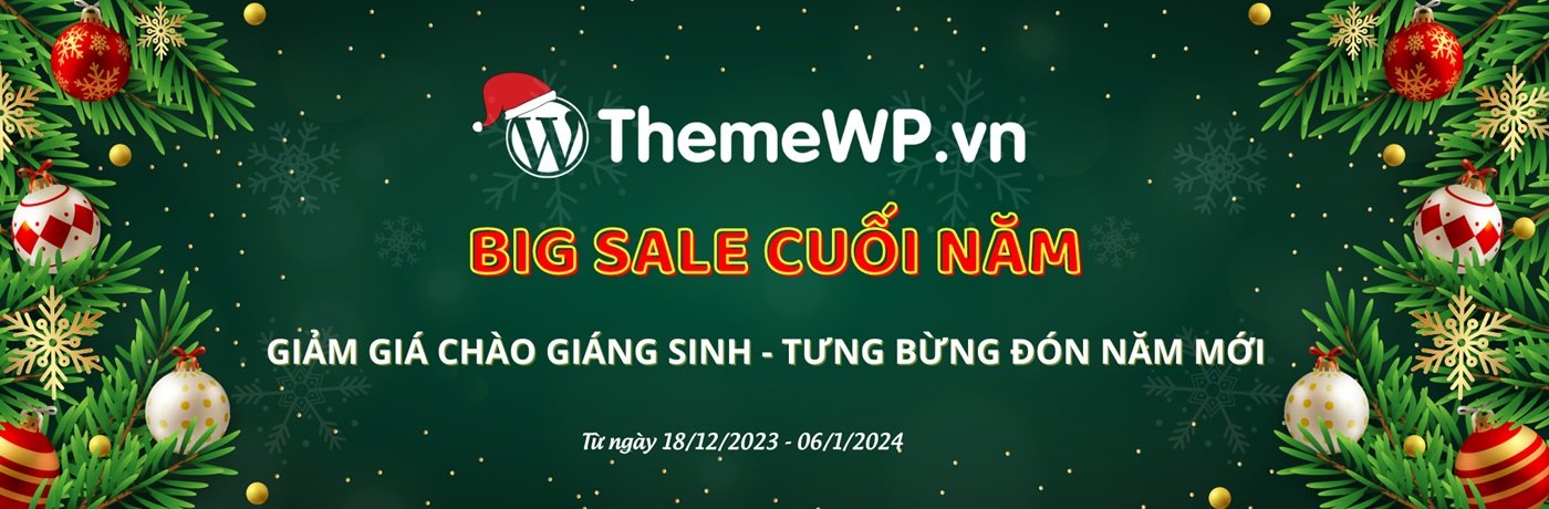 Hòa trong không khí tươi vui của mùa lễ Giáng Sinh và chào đón năm mới 2024. Nhằm tri ân quý khách hàng sau một năm đã đồng hành cùng chúng tôi. Duy nhất chỉ có tại ThemeWP.vn ra mắt chương trình ưu đãi cực kỳ hấp dẫn với thời gian kéo dài đến 20 ngày: