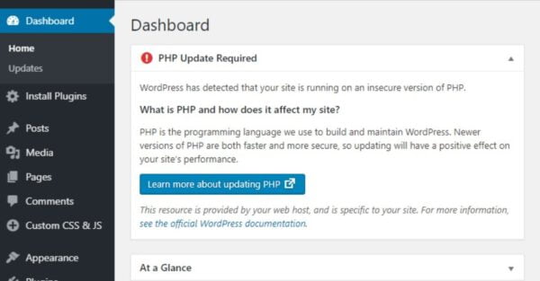 Cách ẩn thông báo yêu cầu update PHP trên WordPress