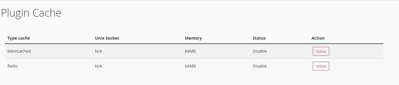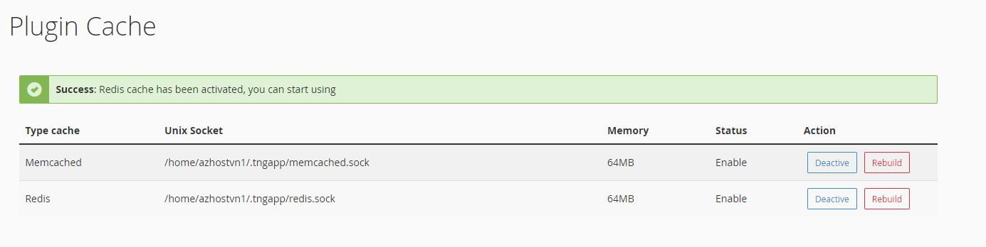 Sau khi bật chức năng Memcached và Redis thì bạn sẽ nhận được thông báo trạng thái gồm :