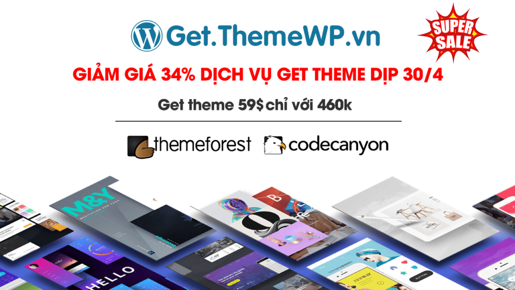Giảm giá 20% dịch vụ Get Themeforest, Codecanyon Mã Coupon: GWP20EY | Truy cập: GetTheme.net