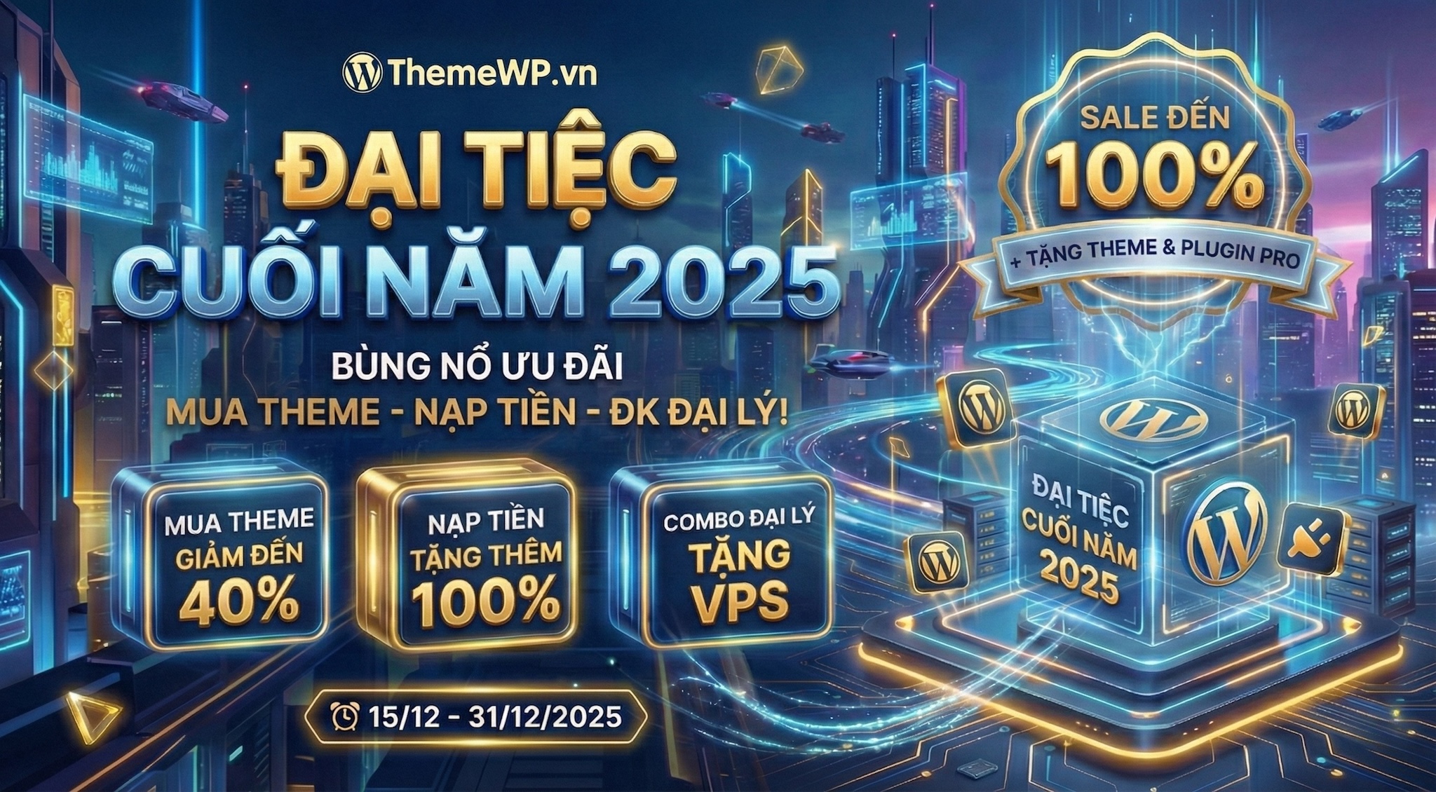 Kết thúc một năm 2025 với nhiều thay đổi, nhằm hỗ trợ và tri ân quý Khách Hàng. ThemeWP.vn dành tặng Quý Khách nhiều chương trình ưu đãi khủng cuối năm: