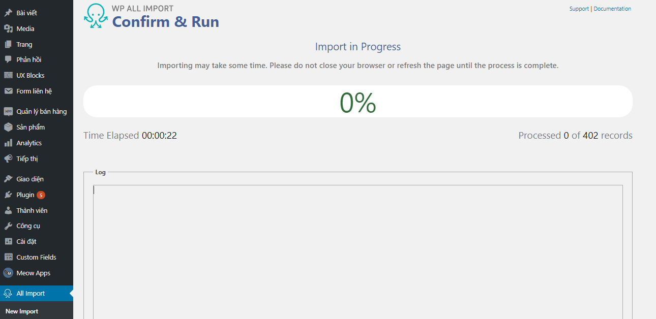 Thơi gian import nhanh hay chậm phụ thuộc vào số lượng lượng dữ liệu records của bạn, Hosting web mà bạn đang sử dụng, nếu càng mạnh thời gian import sẽ càng nhanh