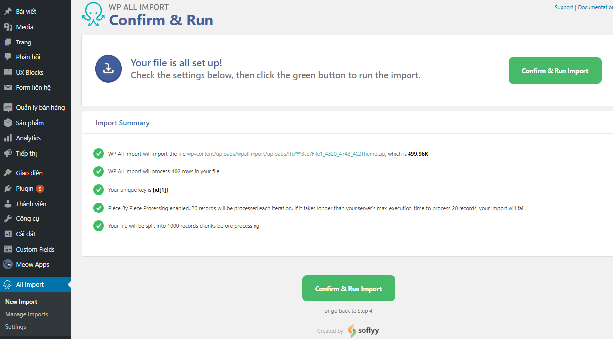 Sau khi cấu hình xong sẽ tới phần xác nhận và tiến hành import để thực hiện bạn click vào phần “Confim & Run Import”