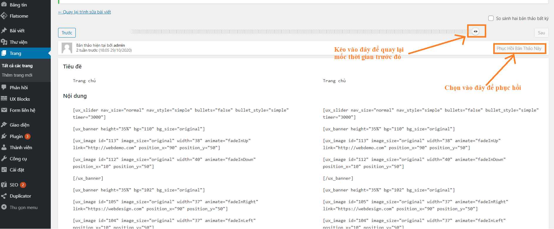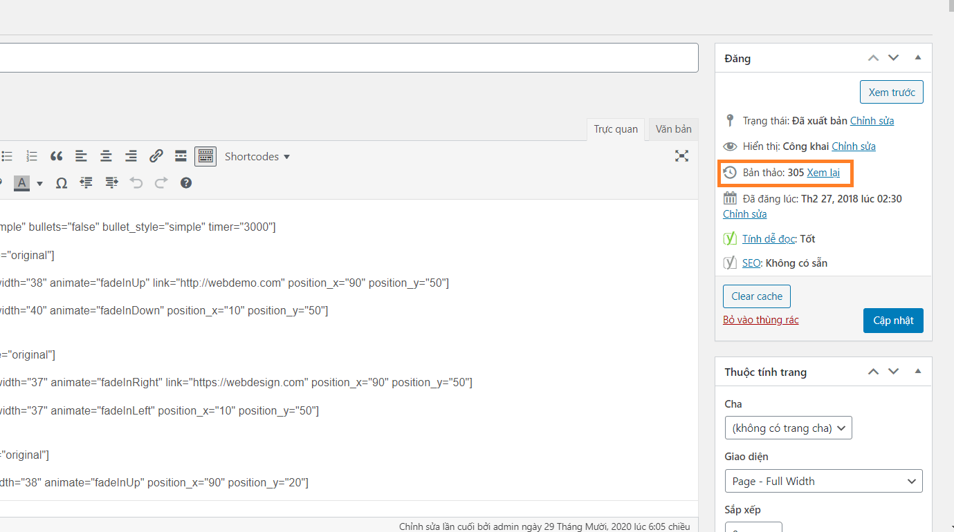 Khi tùy chỉnh giao diện trang chủ, hoặc các trang con, các bạn lỡ xóa nhầm một nội dung nào đó không biết cách làm sao để lấy lại được. Đừng lo, WordPress đã có chế độ xem lại và phục hồi bản thảo, bài viết này sẽ hướng dẫn cho các bạn cách khôi phục nội dung trên trang