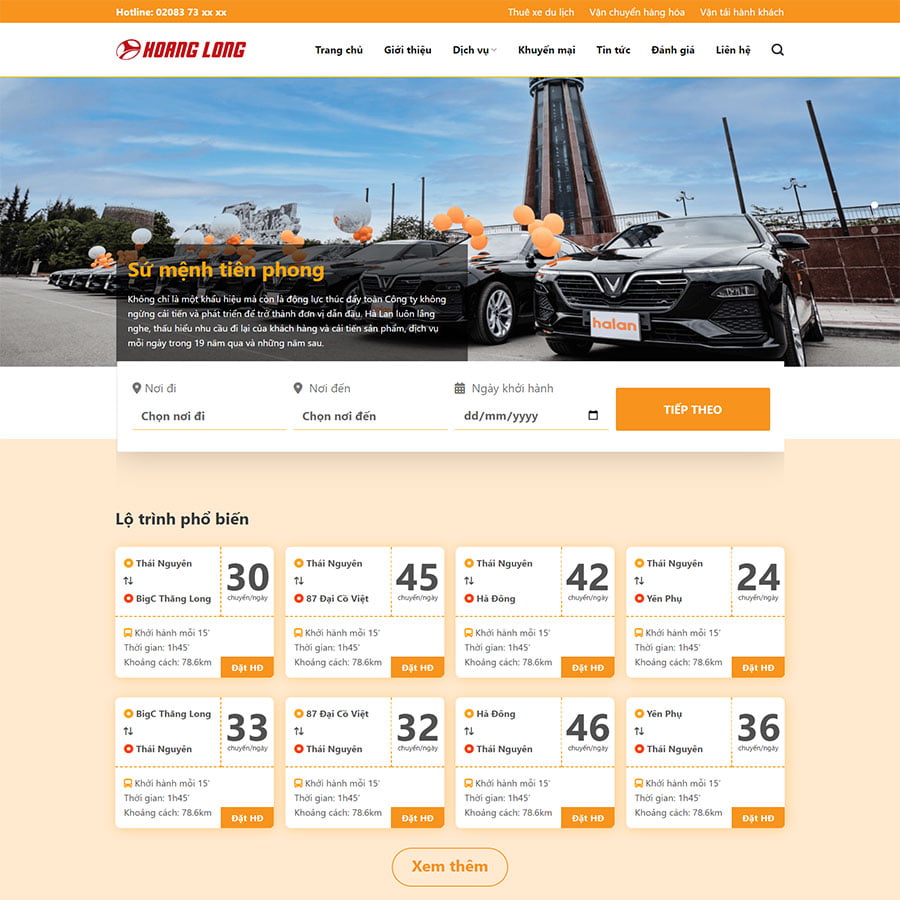 Theme WordPress nhà xe, thuê xe