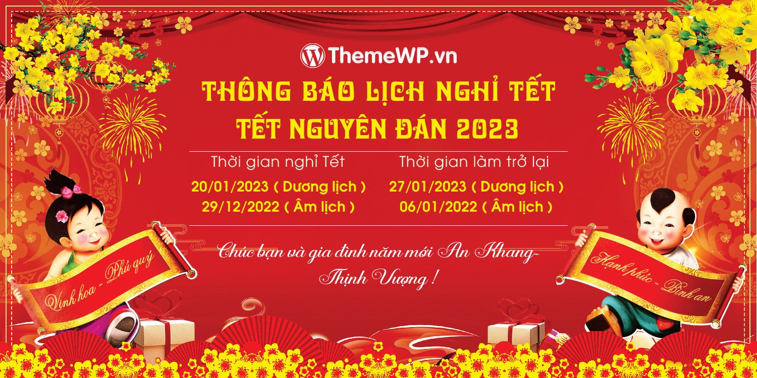 ThemeWP.vn xin gửi tới Quý khách hàng / Quý đối tác thời gian nghỉ Tết Nguyên đán – Quý Mão 2023 như sau: