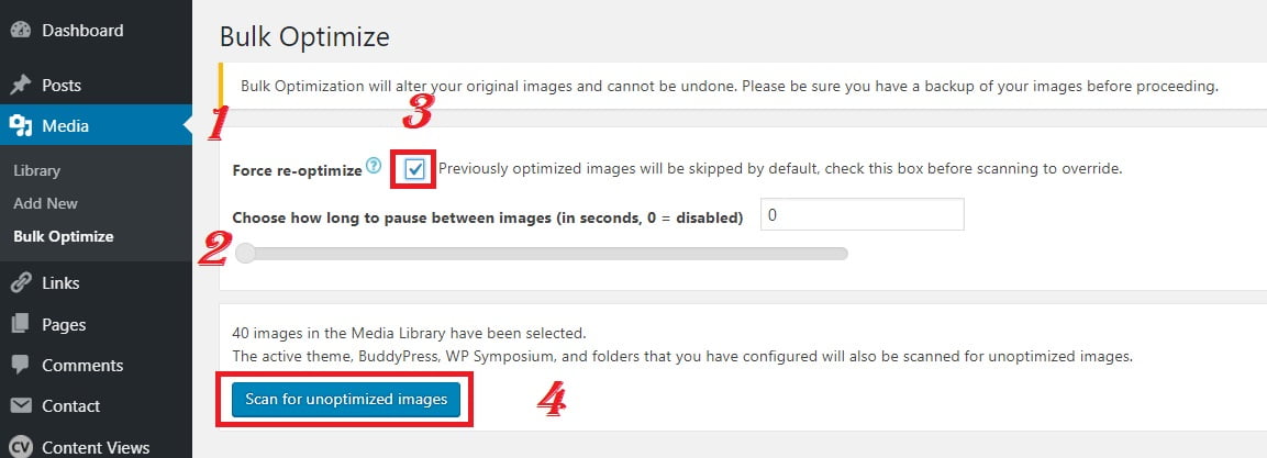 Sau khi bạn đã thao tác tất cả các bước cài đặt, thì ảnh tải lên sau này sẽ tối ưu. Nếu bạn muốn tối ưu tất cả các ảnh đã tải lên trước đó.