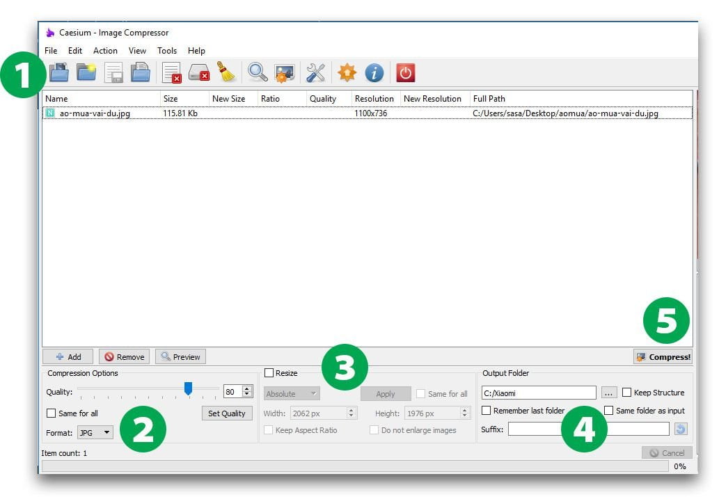 Nén ảnh bằng phần mềm caesium