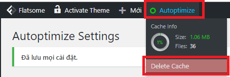 Cuối cùng, bạn click Autoptimize -> Delete Cache ở menu admin trên cùng